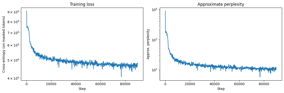 The complete training notebook (from-scratch PyTorch, streaming OpenWebText, single-GPU) is available upon request. Model weights at 100K steps are on the HuggingFace Hub. The implementation is ~150 lines of model code, ~50 lines of training loop, and zero external frameworks.