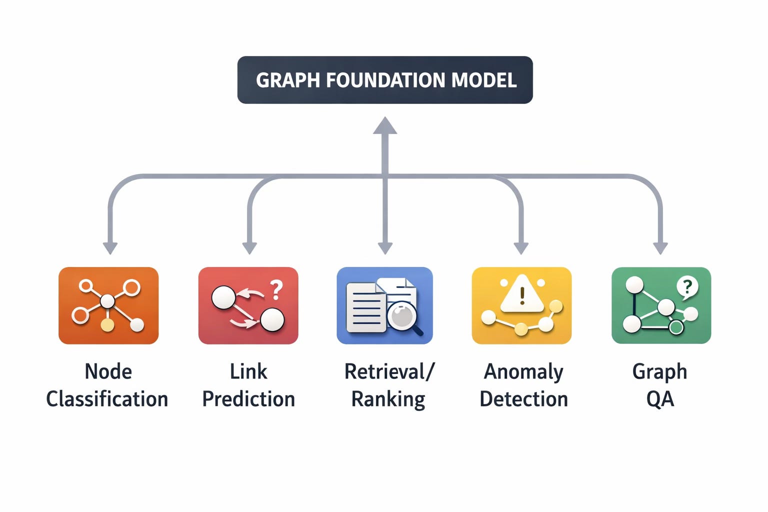 A way to adapt to different downstream tasks. Graph problems span node classification (is this account fake?), link prediction (will this user click this ad?), and graph classification (is this molecule toxic?). The foundation must support all.